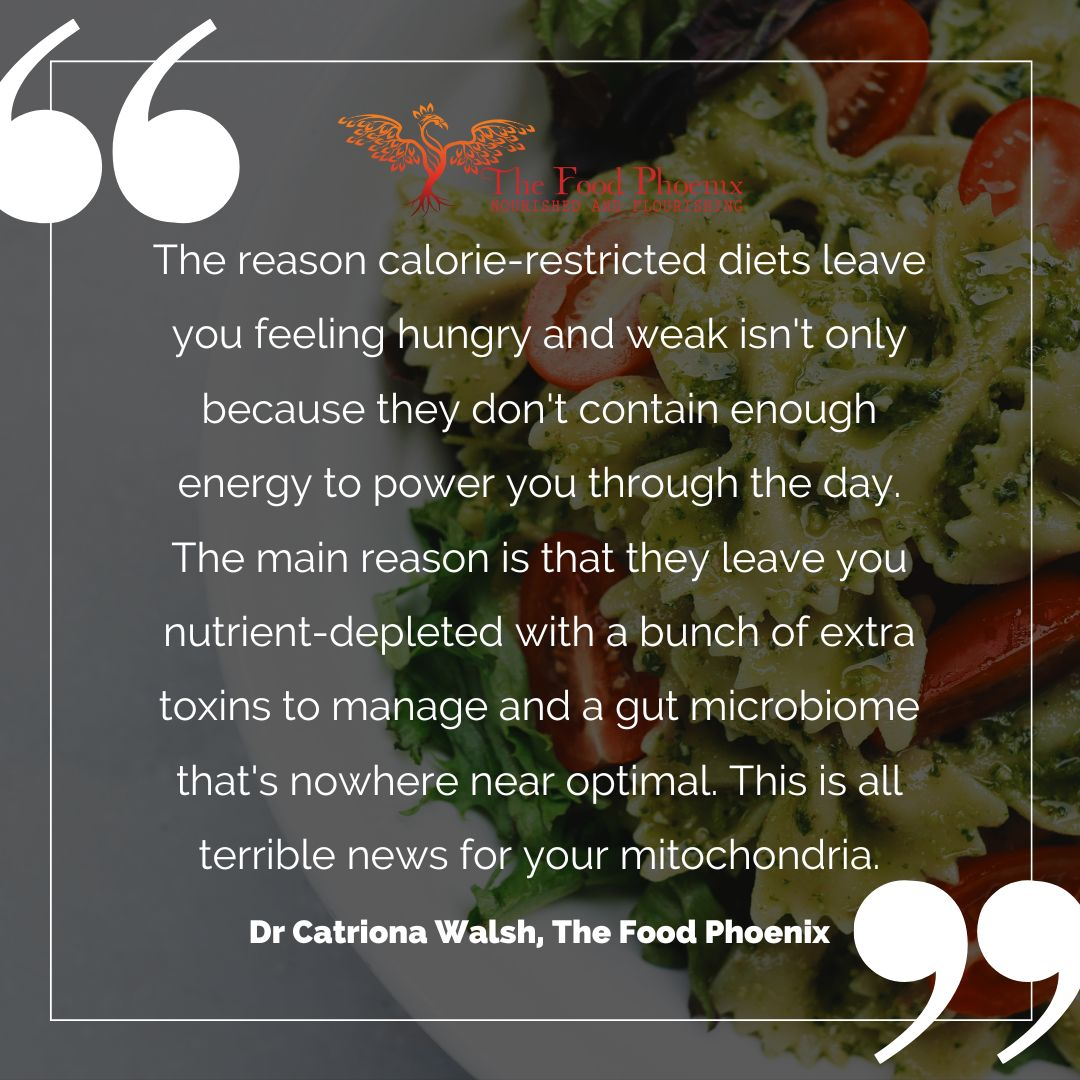 The reason calorie-restricted diets leave you feeling hungry and weak isn’t only because they don’t contain enough energy to power you through the day. The main reason is that they leave you nutrient-depleted with a bunch of extra toxins to manage and a gut microbiome that’s nowhere near optimal. This is all terrible news for your mitochondria.